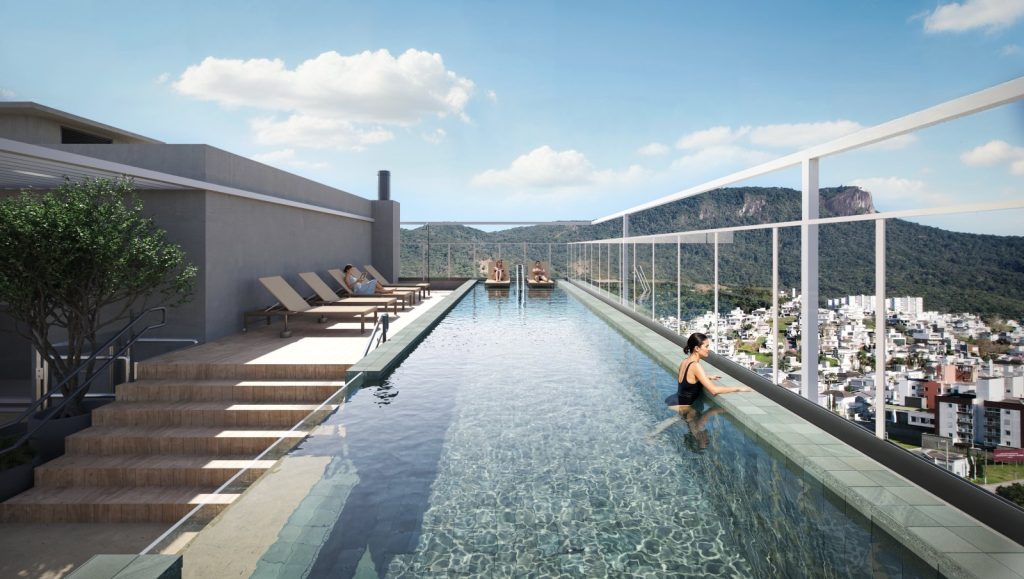 As áreas de lazer e bem-estar reforçam a vocação da Hurbana em criar lugares de conexão. O rooftop panorâmico abriga piscina com vista para a Pedra Branca, área de descanso e espaços para encontros sociais com salão de festas, lareira, sala de massagem, espaço wellness e terraço grill completam o conjunto.