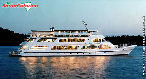 Os passeios no Barco Príncipe incluem almoço e a oportunidade de conhecer de perto as belezas naturais da Baia da Babitonga.