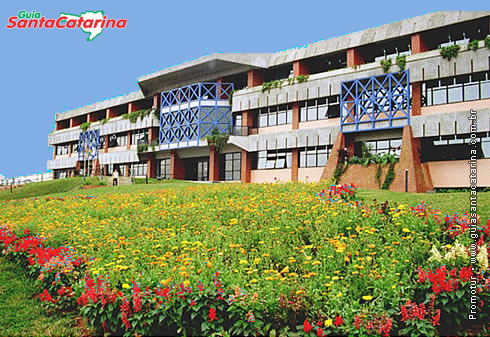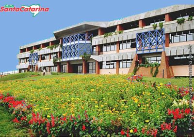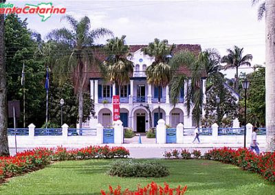 A Prefeitura Municipal de Joinville também revela as características da cidade, com um jardim florido e conservado.