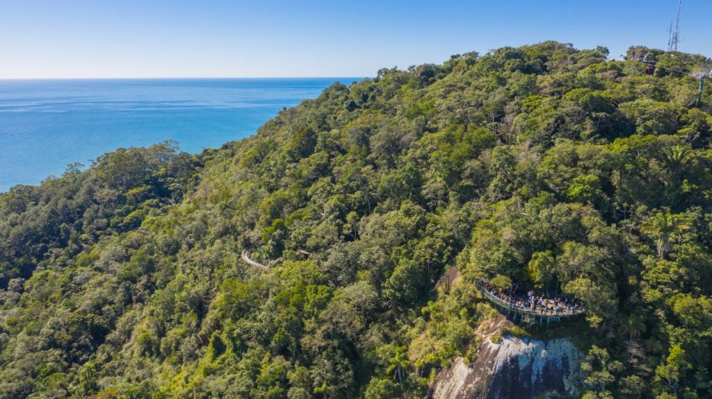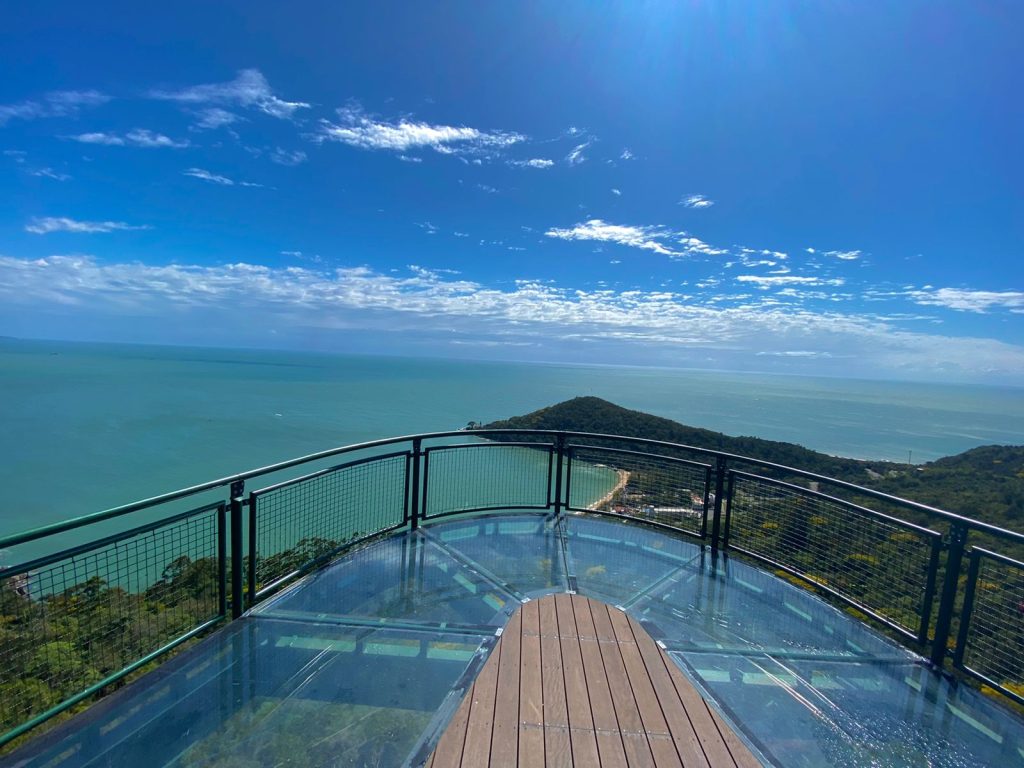 O passeio pode começar na estação Barra Sul ou na estação Laranjeiras, ambas levando você até a Estação Mata Atlântica. Nessa estação, você encontrará uma extensa área verde preservada, quiosques, uma loja de souvenirs e o Parque Ambiental. Caminhe pelos 500 metros de passarelas sinalizadas por placas informativas sobre a fauna e a flora nativa e desfrute de dois mirantes que oferecem vistas panorâmicas deslumbrantes. Um deles oferece uma vista espetacular da praia Central de Balneário Camboriú, enquanto o outro proporciona uma vista impressionante do Oceano Atlântico e da Praia de Laranjeiras. No mirante da Praia de Laranjeiras, você ainda encontrará uma plataforma de vidro que proporciona uma experiência única e emocionante.